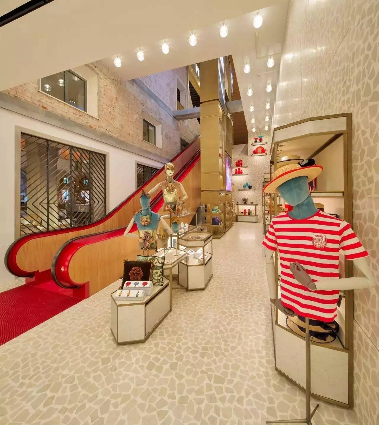 在不同品牌专区之间穿行时,我被提醒要留意那些和店铺完美结合的古老壁画,或者原属于建筑本身一部分的特殊装饰。设计师把这些文物同店铺整体融合,用来体现建筑物的历史背景。建筑自身的线条美感和空间感加强了奢侈品购物的体验,你会觉得这个空间和里头装着的品牌是绝配。