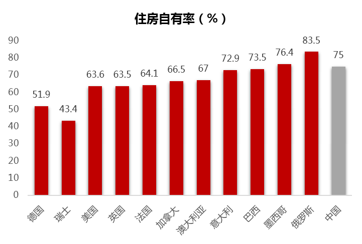 我们国家目前的住房自有率没有官方的数据可以支撑,行业内各种抽样调查的数据大约在75%的范围内,根据国际经验,经济越发达,住房自有率越低。随着经济的进一步发展,整体住房自有率预计还有10个点以上的下降空间。