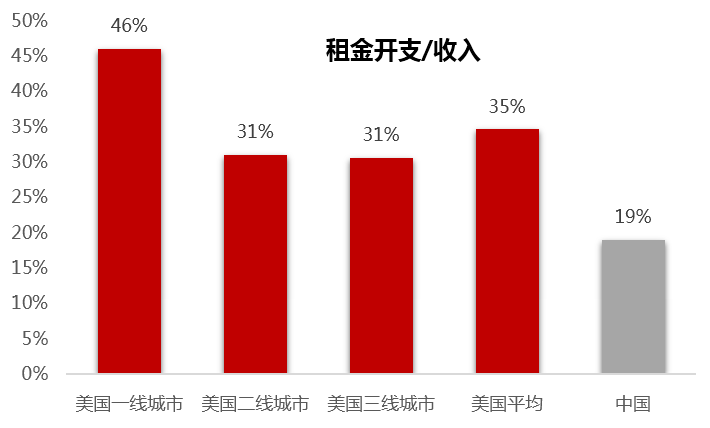 从趋势上看,租赁市场的GMV由两个指标决定,一是住房自有率,二是租金开支占收入的比重。