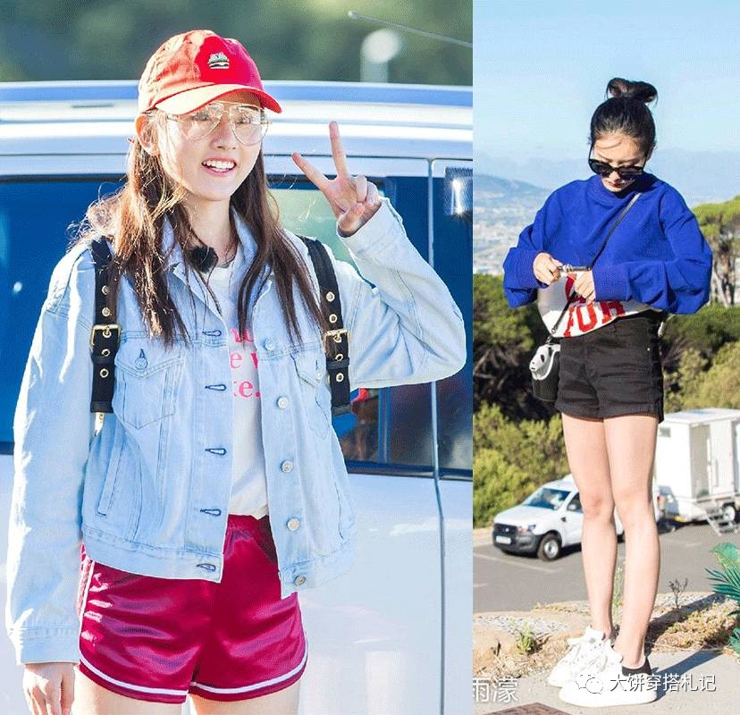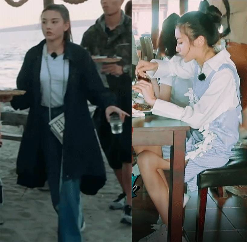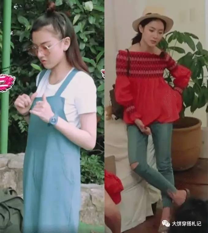 而娜扎则是简单的白T+背带裤,清爽干净,怕冷带特意戴上了棕色小线衣。不过小8有点好奇:娜扎怎么舍得露出她的大白腿了?