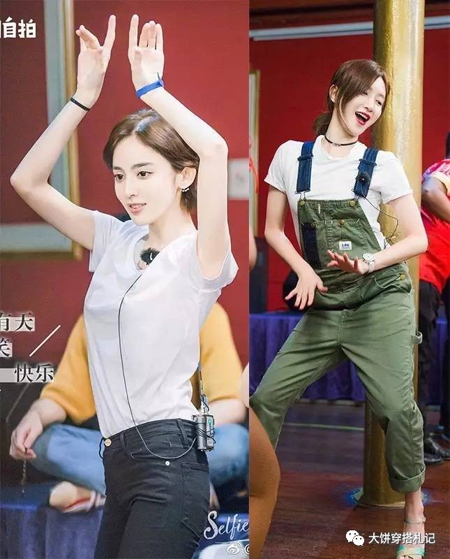 而白衬衫的搭配这里还有一组,Peserio阔腿裤打造出祖儿的大长腿,娜扎穿了可爱的Isabel Marant背带裤,都是不错的搭法,白T恤绝对是百搭之最了吧。