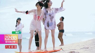 而江疏影则是比基尼外搭配了热带风情的Vix罩衫,一双长腿白的耀眼!