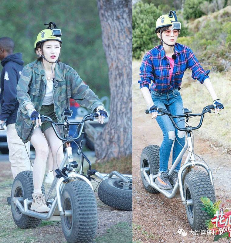 咱们再来看看不爱红妆爱武装的花少四美去山路骑车车都穿的啥?这种运动场合,舒适、方便、能保护自己很重要。