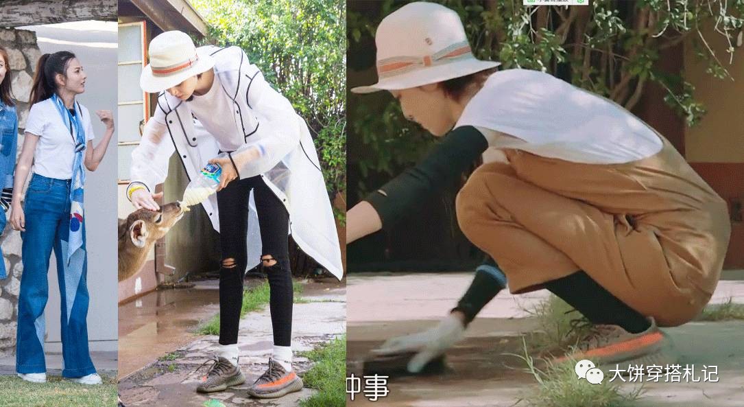 在保护区“伺候”可爱的小动物们,花少们用志愿者必穿的一件白T恤又上演了一衣多搭之时髦N种穿法!娜扎的小丝巾(一刀切牛仔裤是Frame)做特色点睛、江江的绿白配、祖儿的大衬衫……各有千秋,不细叨。