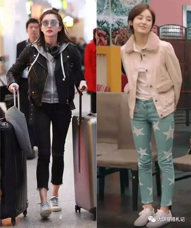 一行人到了机场,娜扎是粉红毛毛领夹克搭配stella McCartney星星牛仔裤,将软妹风格贯彻到底;