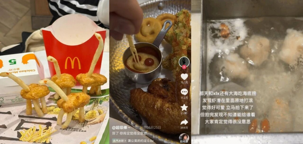 作为一个每天高强度刷抖音的人,我对这句话太熟了。年轻人在短视频上用薯条和麦乐鸡拼出歪脖子「麦当龙」,拍火锅里翻滚的虾滑,用薯饼和番茄酱拼出的笑脸——这些脑洞十足的用户创意,每周都会出现那么一两个,成为我日常生活的趣味调剂。