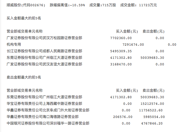 从盘后龙虎榜来看,今日抛售顺威股份的均为游资。其中,东莞证券广州临江大道营业部位居卖一位置,该席位卖出金额达5003.97万元,占顺威股份全天成交额的42.76%。华宝证券上海西藏中路营业部、华鑫证券北京阜成门外大街营业部则分别位居卖二、卖三席位,卖出金额分别为1521.26万元、1175.65万元。值得一提的是,在游资大量抛售顺威股份之时,有一机构抄底,买入729.17万元。