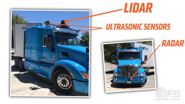 由于图片质量不高,我们并不能看清楚这辆车上还装载有哪些传感器。不过根据Waymo在乘用车方面进行研发的例子,这辆自动驾驶的卡车车顶上肯定还有GPS模块、前挡风玻璃上应该也有一个摄像头阵列用来识别红绿灯、车道线,而车身后部和周边,应该还有一些中短距离毫米波雷达和近距离的超声波雷达。