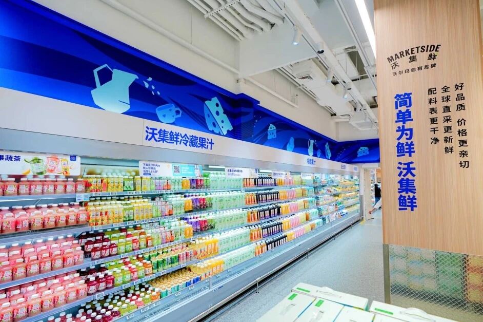 其实一个明显的变化是,自2025年起社交平台上越来越多的声音表示,沃尔玛变得新鲜有趣,其自有品牌“沃集鲜”成为自发测评、种草的常客。在沃尔玛成都凯德广场金牛店,沃集鲜系列商品集中陈列、场景化分区,成为门店流量与口碑的双重担当。