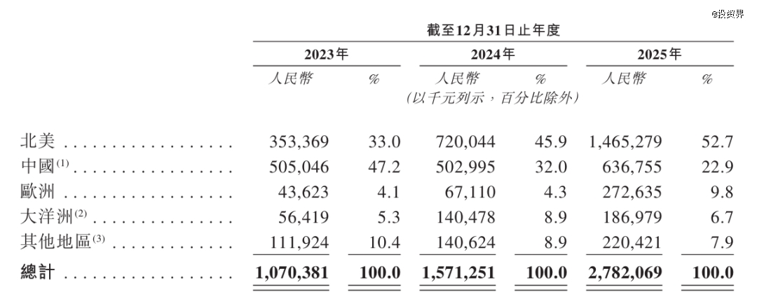 其中,海外市场正占据越来越重要的位置。2023年至2025年的三年间,阿麦斯的北美收入从3.5亿元增至近15亿元,在集团总收入中的占比从三成升至超过一半,欧洲从不到半个亿增至近3亿元。