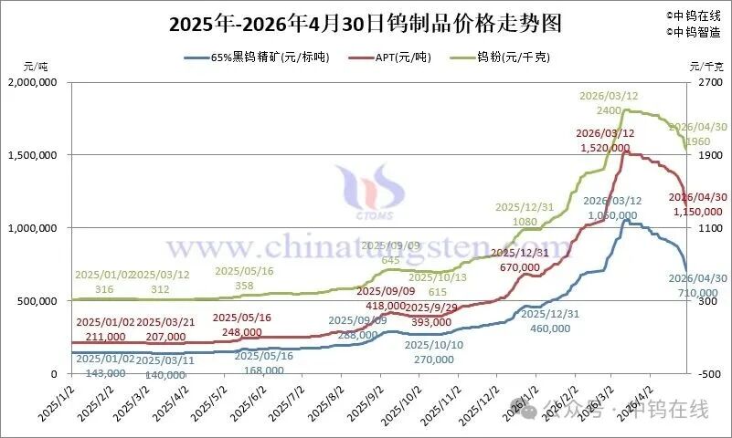 但自3月中旬以来,受获利了结抛压影响,市场行情快速回落,钨原料价格下跌约30%,钨废料价格基本回吐了2026年内的绝大部分涨幅,自高位回落超50%。