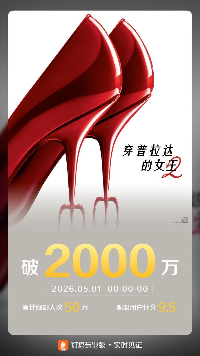 据灯塔专业版实时数据,截至5月1日0时0分,影片《穿普拉达的女王2》票房突破2000万元。