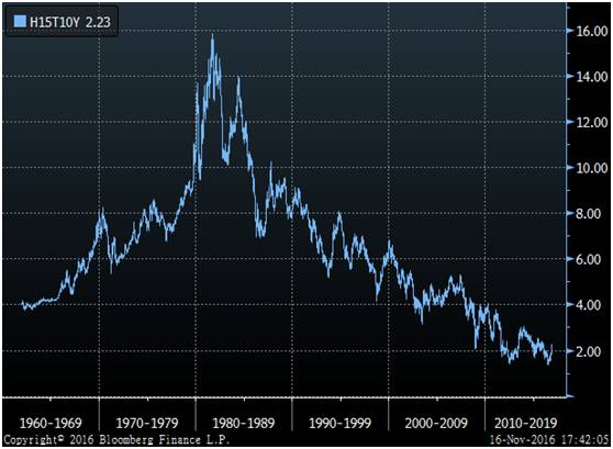 美国十年期国债收益率,数据来源:彭博金融数据终端