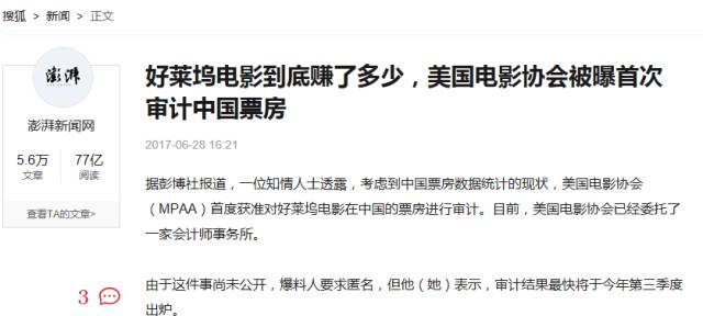 前不久,就有外媒称美国电影协会(MPAA)已经聘请一家会计事务所,将审计所有在华上映好莱坞电影的中国票房。