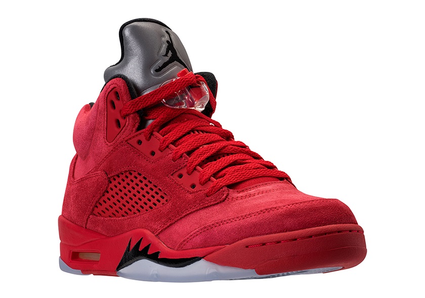 Jordan5又推出了一款全红鞋履,以麂皮面料打造鞋身。得到老式野马战斗机的灵感,中底设计了黑色“尖牙”细节。鲜亮的颜色又将引领今夏鞋履市场的热潮。