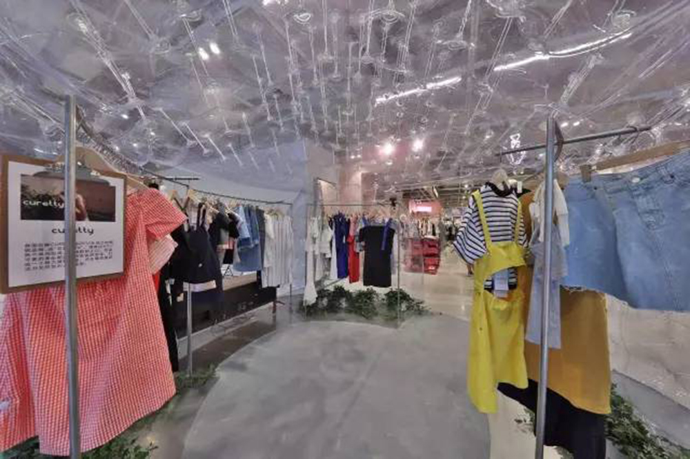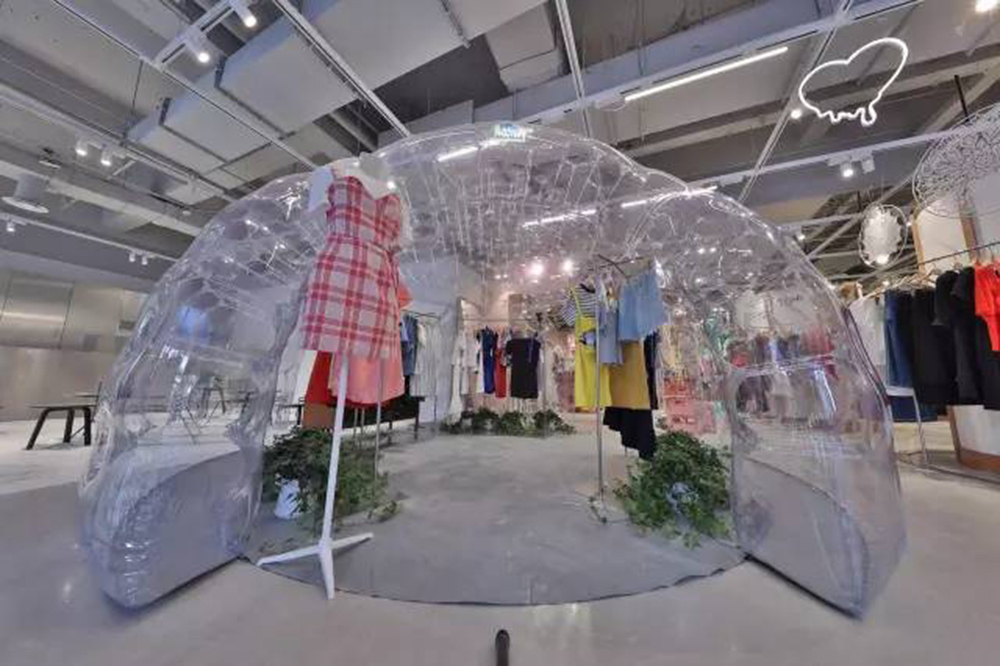 i.t也为旗下不同的女装品牌设计了半独立的空间,比如主打活力少女风的Curetty就被展示在了一个巨大的外太空充气帐篷里,十分吸睛。