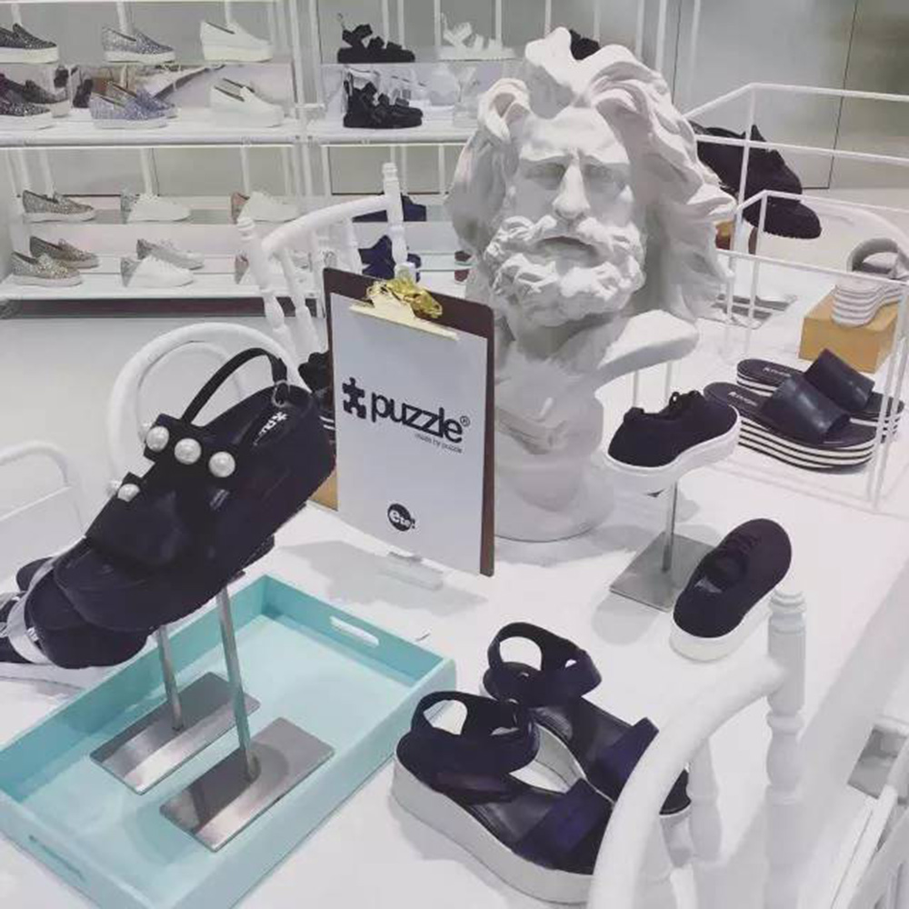 走到鞋履区,会误以为进入了哪家艺术博物馆,木架上的纯白色装饰品,极具现代感的装置艺术,甚至艺术石膏像也被陈列在鞋履之中,鞋履本身具有的立体和雕塑性同这些装置相呼应。
