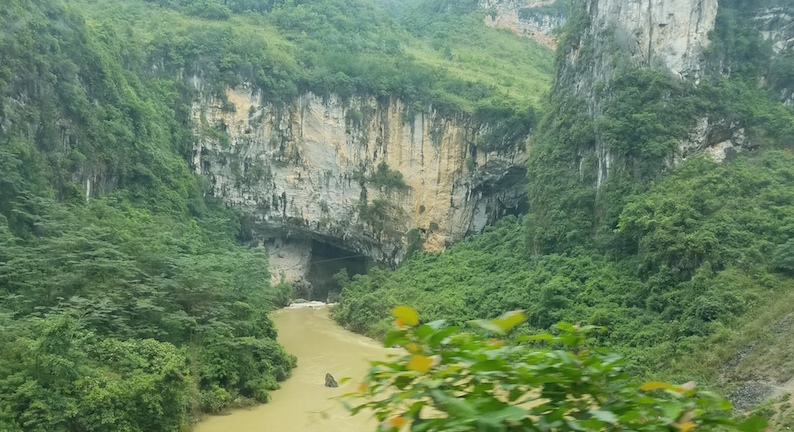 张学凤说,她以为盘阳河就此消失了。但十分钟后,她看见一条更宽阔的河流从巨型石灰岩下喷薄而出。司机告诉她,那还是盘阳河。