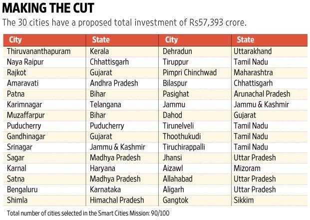 此外,甘地讷格尔(Gandhinaga)、穆扎法尔布尔(Muzaffarpur)、卡尔纳尔(Karnal)、蒂鲁内尔维利(Tirunelveli)和甘托克(Gangtok)也成为印度智慧城市的一部分。