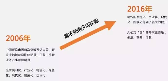 ▲来源品途网"新质生活·品质时代" 2016消费升级白皮书丨2006年和2016年人们对“食”的需求大不同