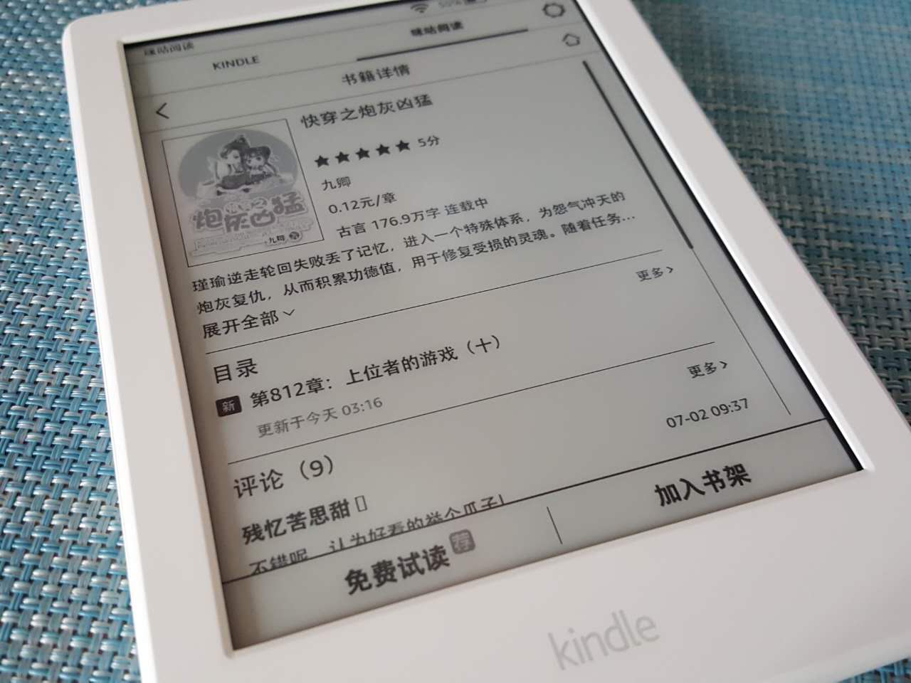但如果你是一个Kindle的粉丝,又热爱网文,这可能是一个比较好的折中选择。