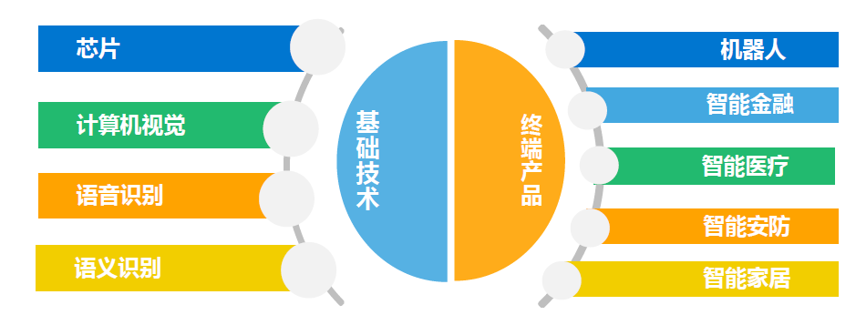 AI是一门综合了计算机科学、生理学、哲学的交叉学科。凡是使用机器代替人类实现认知、识别、分析、决策等功能,均可认为使用了AI技术。作为基础技术,AI在很多行业都有用武之地,既有行业+AI(如金融+AI=Fintech),也有其具体应用行业的概念(比如机器人)。