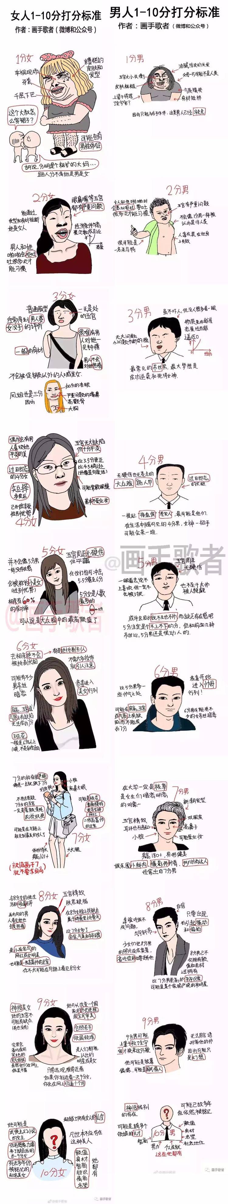 所以在讲今天的主题之前,舍爷想和大家聊聊什么是审美——简单点说,审美就是你觉得什么东西是美的,什么东西又是丑的,最近网上流传的“1分~10分男女图解”也是审美的一种体现。
