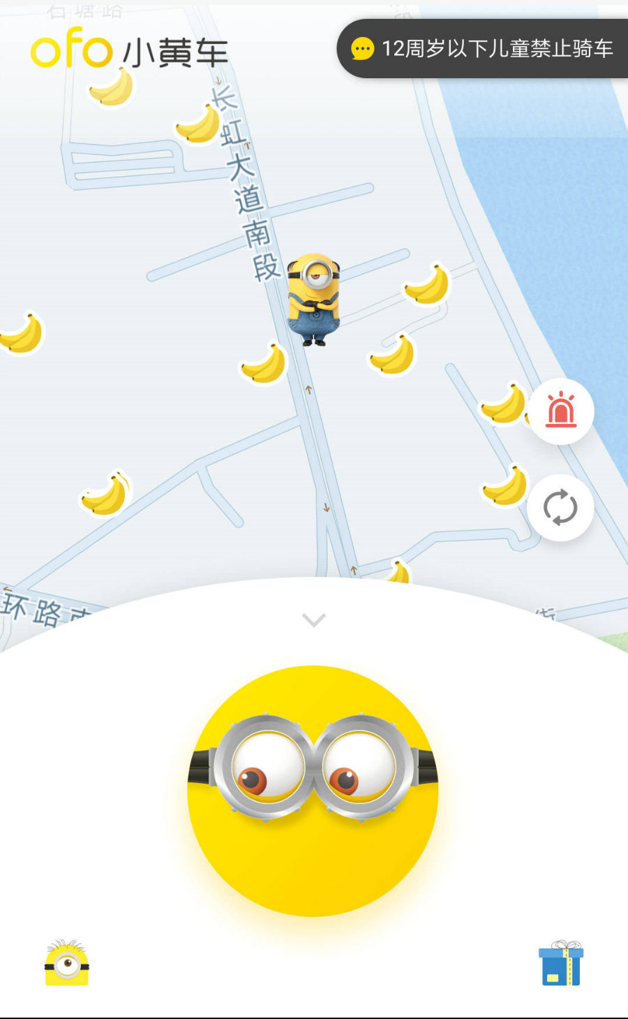 这或许算得上是共享单车品牌ofo迄今为止最深入的一次品牌合作。5万多辆“大眼小黄车”被投放在了北京、上海等一线城市和部分二线城市。除了定制版大眼小黄车外,电影制作方及小黄人形象拥有者环球影业还与ofo合作了一支小黄人广告片。另外当你打开ofo的APP,会发现整个界面也被这群黄色小妖怪占领——虽然在uber时代这个玩法已经被用烂。