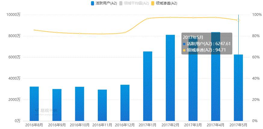 作为一款社会现象级游戏,《王者荣耀》早已不局限于游戏概念领域,更多成为一种社交方式,注册用户已经突破2亿。易观千帆数据监测到2017年5月,《王者荣耀》月活用户高达6247.62万,领域渗透率更是到达94.71%。可以这么说,每7个人中间就有1个农药玩家,走在人群中任何一个人都有可能是你肩作战的队友,如此大规模的渗透率简直是“全民中毒”啊。