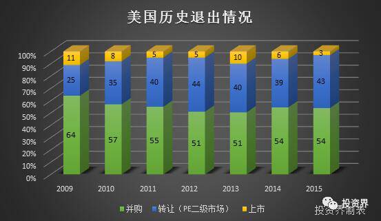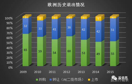 根据数据库PitchBook披露信息,《投资界》收集2009—2015年数据制表时发现:美国转让退出占私募股权退出比例从2009年的25%逐年增加至43%,欧洲转让退出占比从2009年的32%逐年增加至51%;我国私募股权基金的退出机制一直以IPO退出为首选,而欧美以并购和股权转让为主。