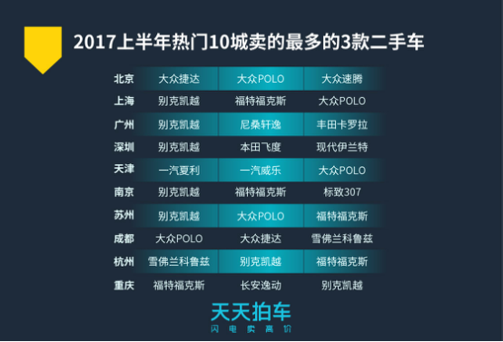 别克凯越、大众POLO、福特福克斯为车主热卖二手车型