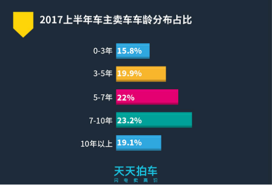 从卖车车龄来看,中国二手车车龄相对较长。天天拍车此次发布的大数据报告显示,64.3%的二手车开5年以上才选择卖掉,其中7-10年车龄二手车卖出量最高,5-7年车龄、3-5年车龄二手车卖出量占比次之。同比欧美二手车市场来看,欧美汽车平均更新周期为2年,可见中国汽车使用周期普遍较长,但从二手车演进趋势来看,中国二手车车龄正呈现出缩短态势。