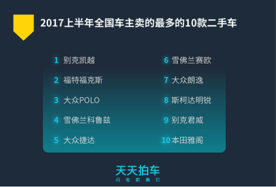 哪些二手车卖的最多?由天天拍车发布的此次报告中显示,在所有个人车主出售的二手车中,别克凯越、福特福克斯、大众POLO、雪佛兰科鲁兹、大众捷达、雪佛兰赛欧、大众朗逸、斯柯达明锐、别克君威、本田雅阁成为前十大卖出量最大的车型,这也正与中国前几年新车热销车型相契合。