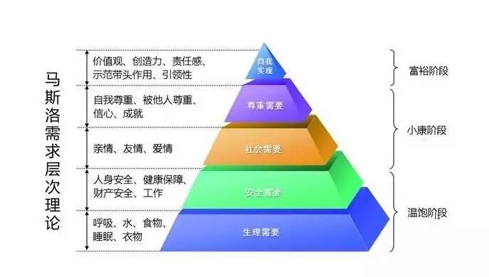 马斯洛将人的需求分为五个层次:生理需求、安全需求、情感社交需求、被认可的需求以及自我价值实现的需求。