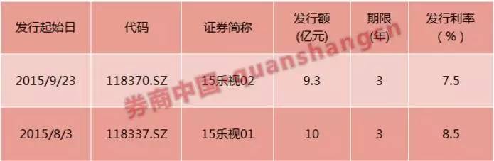 根据WIND数据,以乐视网为发行人的有两只公司债,它们分别于15年8月及9月发行,期限三年。两只债券共计总融资规模19.3亿元,将于明年8月、9月到期。值得一提的是,当时两只债券发行利率非常高,分别为8.5%、7.5%,目前尚未获知两只债券的持有机构。