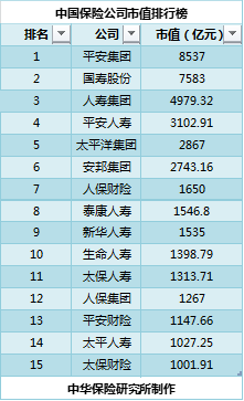 中华保险研究所近期发布了一份《中国保险公司市场价值排行榜》(下称《排行榜》),包括全部保险集团公司、财产险公司、人身险公司和再保险公司共145家。