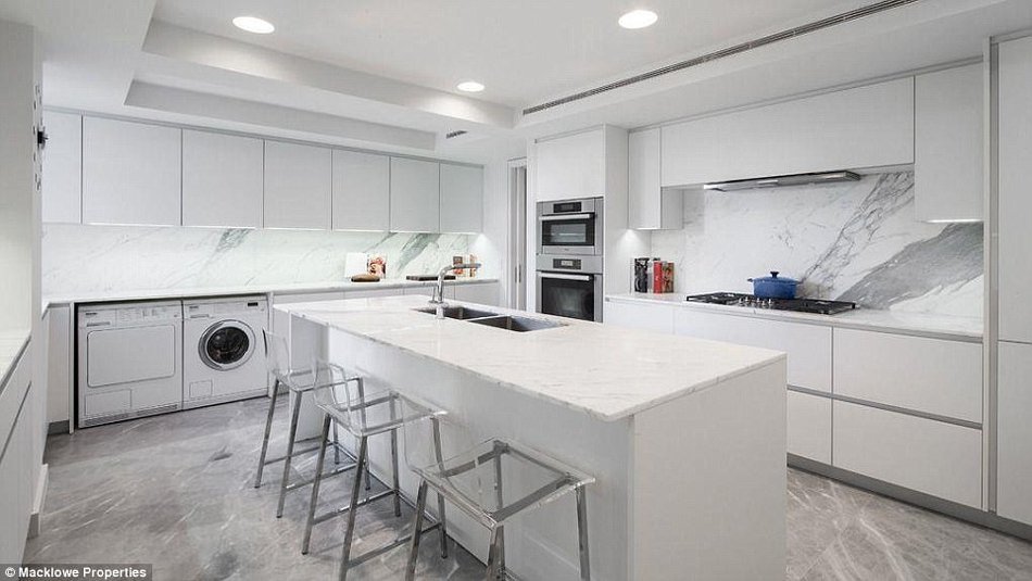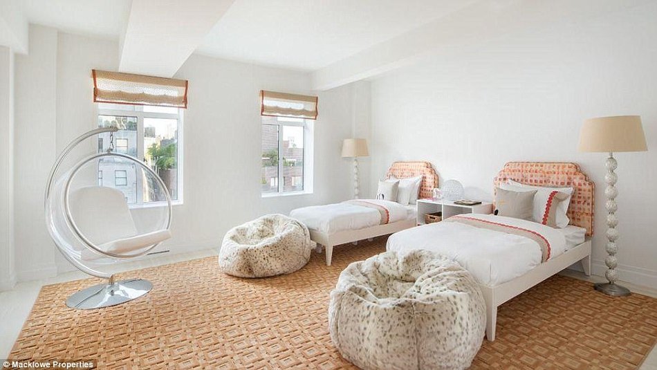 这栋内部装修有如宫殿一般的豪宅里也有一间少女心满满的卧室。据报道,公寓里有5间卧室,5间装修极尽奢华的浴室,3间盥洗室和9个壁炉。房产中介表示,公寓里其他房间的面积也都很大,而且天花板都很高。公寓里设有起居室,(正式场合用)餐厅,酒吧,图书室,厨房,健身房,按摩房和娱乐室。