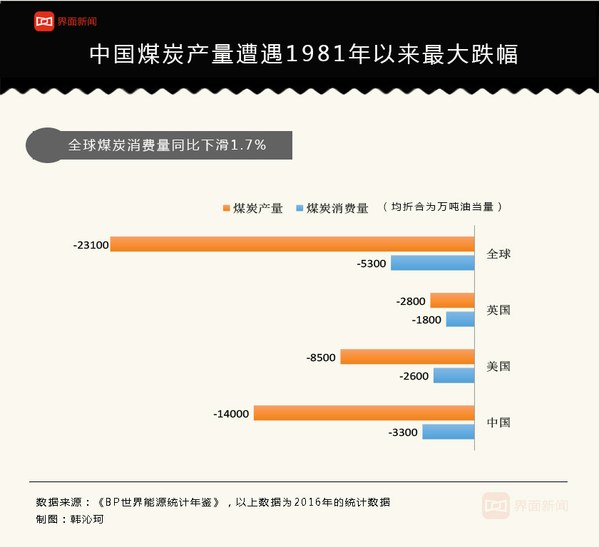全球煤炭消费量连续两年下滑,在一次能源产量中的占比滑落至28.1%,是2004年以来的最低占比。2017年4月,英国电力部门实现了首个“无煤炭”日。