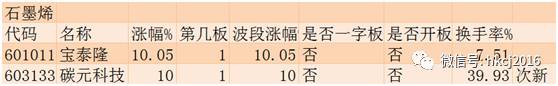 石墨烯作为近一个月内成为热点次数最多的板块,月内利好消息不断,2017年世界石墨烯创新大会将于7月6日在常州举行,此外,上海微系统与信息技术研究所近日研究发现,在绝缘体上制备石墨烯使用锗薄膜做催化剂,可制备出高质量的单层石墨烯材料,解决了使用其他金属催化剂引入金属沾污的问题。受两大利好消息的影响,石墨烯板块50只个股中有41只出现上涨,其中板块长期龙头碳元科技涨停,方大炭素涨幅逾8%,新龙头宝泰隆出现。