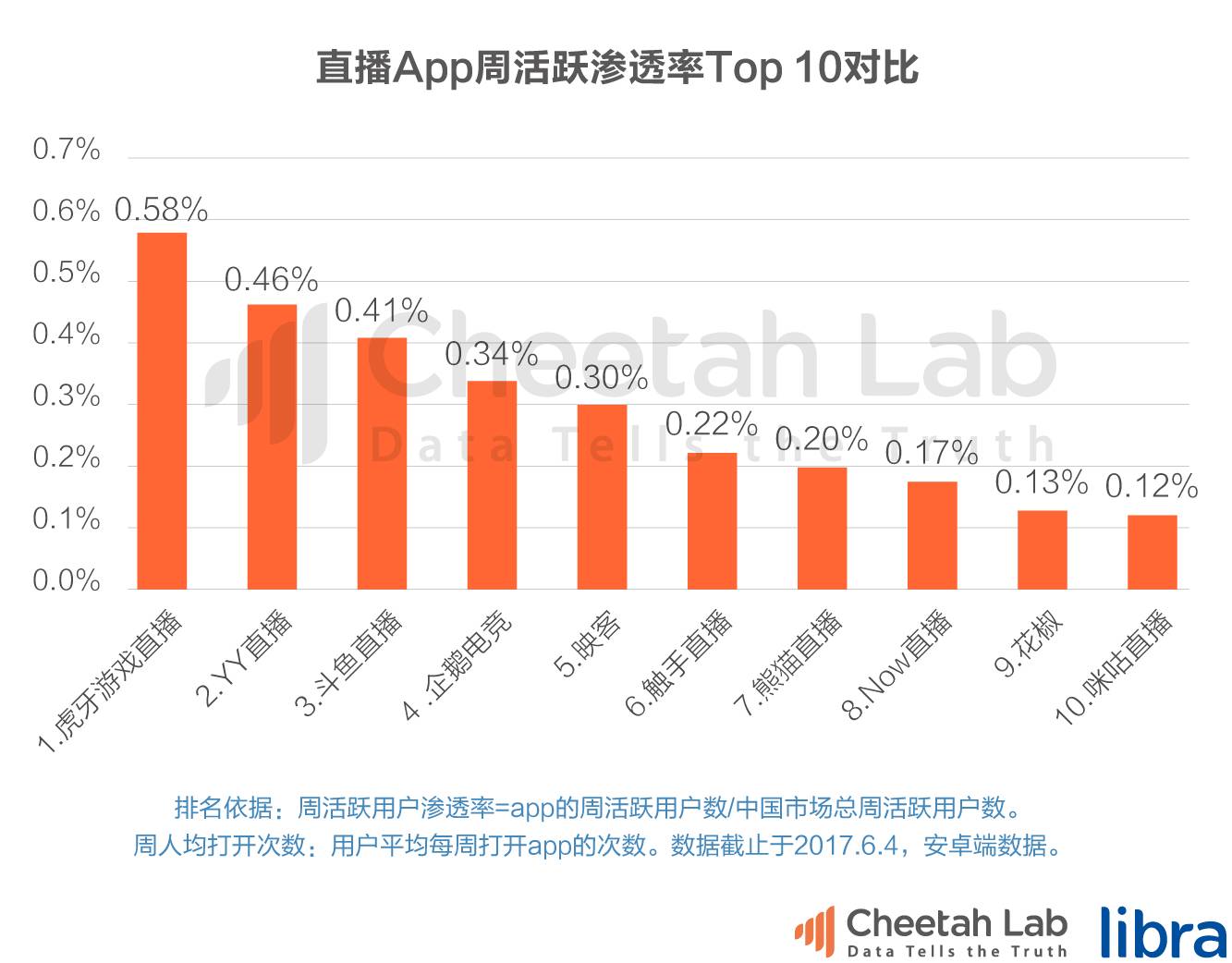 为了更好地洞察中国直播App市场的现状,猎豹全球智库(Cheetah Lab)、中国移动和粉俱乐部联合发布《2017上半年中国直播app白皮书》,本白皮书集合了双方数据优势,从用户行为、流量、app活跃、用户画像等多维度呈现2017上半年中国直播app的发展及未来趋势。