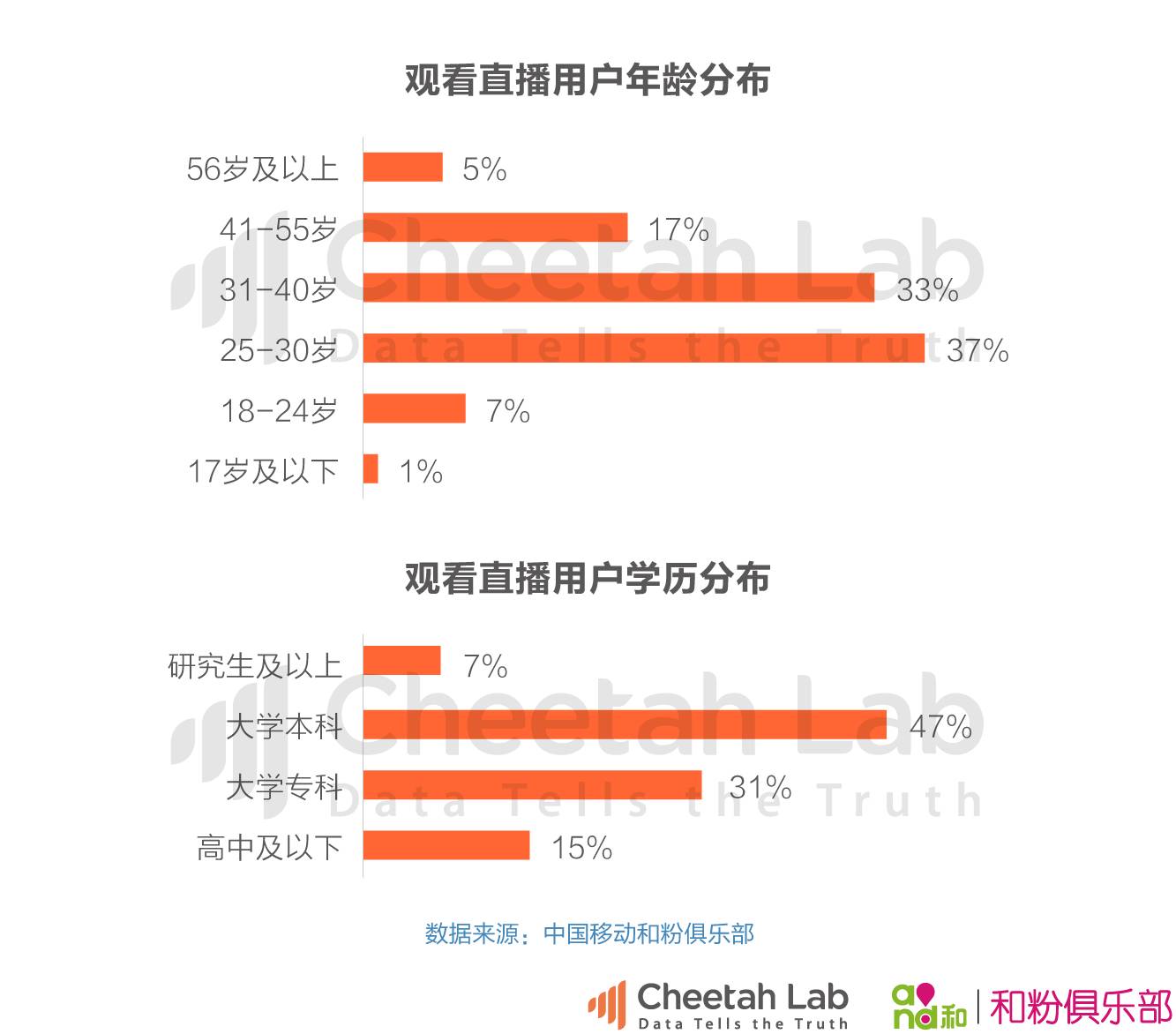 根据调研结果显示,直播用户男女比例为63%:37%,年轻、85%高中以上的学历,是一个处于发展进步中的群体。