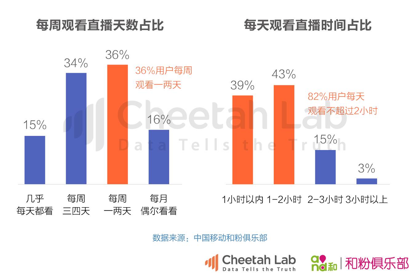 一方面,经过直播一年多的发展,用户对直播app的使用更理性。从观看直播的时间来说,每周只有1-2天观看直播的用户占比最高,达到36%;82%用户每天观看直播时间不超过2个小时。