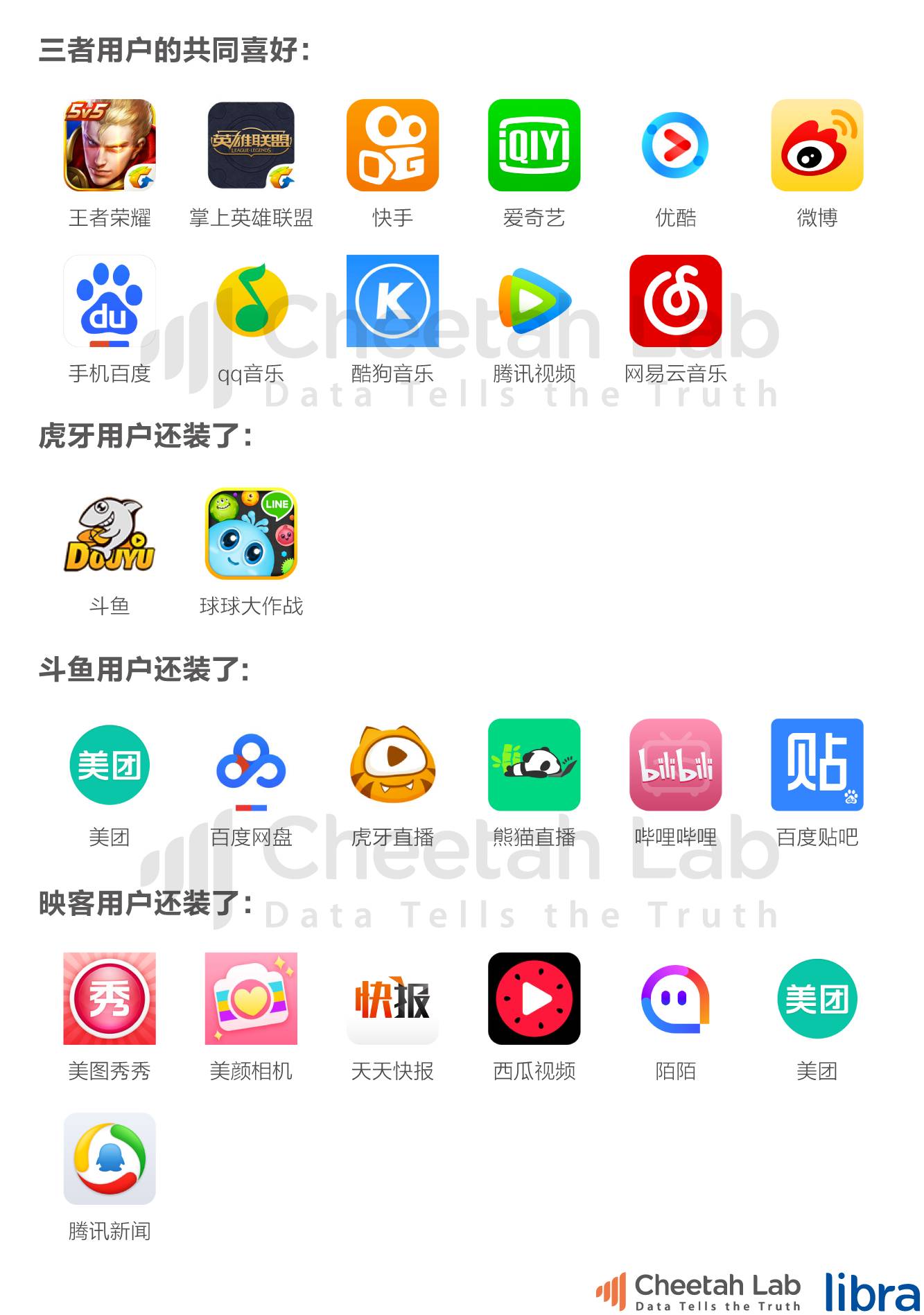 但映客做游戏直播能成功吗?从用户画像上看,映客的用户年龄与虎牙、斗鱼接近,区别在于女性用户更多。从虎牙、斗鱼、映客用户使用app的重合度,也能大概看出来是不同的app,性别差异表现明显。
