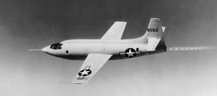 基于以上原因,要想突破声障,就得采用新的动力方式。人类首次实现超声速飞行的纪录是在1947年10月14日,由美国飞行员查尔斯 埃尔伍德 耶格尔(CharlesElwood Yeager)驾驶名为“迷人的葛兰妮”号(Glamorous Glennis)的X-1试验机所创造,耶格尔在12800米的高度上依次打开四具灯火箭引擎,从0.83马赫一举冲到1.06马赫,并以此速度飞行了约20秒。