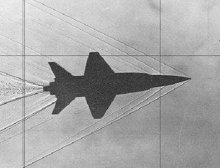 ▲飞机在高马赫数时产生的激波是这样的(风洞照片)