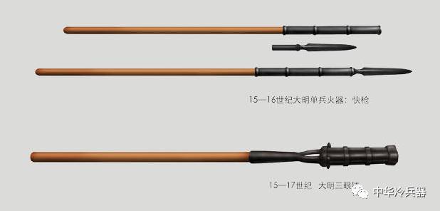 上图:明代的快枪和三眼铳,都属于火门枪一类