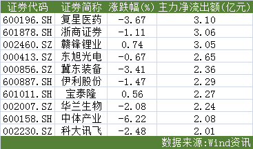 复星医药(600196.SH)则遭遇主力大幅度抛售,以3.1亿元的主力净流出额位居个股第一。此外,昨日受热捧的浙商证券(601878.SH)今日遇冷,其主力净流出达3.06亿元位列第二。