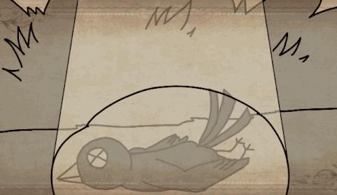 高达:我制作片子时的时间和精力其实是比较充裕的啦,但是我也相信只有适合的才是最好的,有一件事不知是好是坏,就是我笔下的人物都冒着一种原生态的!傻!气!而对于乌鸦这个主要角色,制作过程中是连人设都没有的。作为导演我希望这个角色可以有愚蠢和可爱两种气质,愚蠢的气质是我自带的,可爱的感觉我通过一些动画语言把它画的Q弹一些来体现。