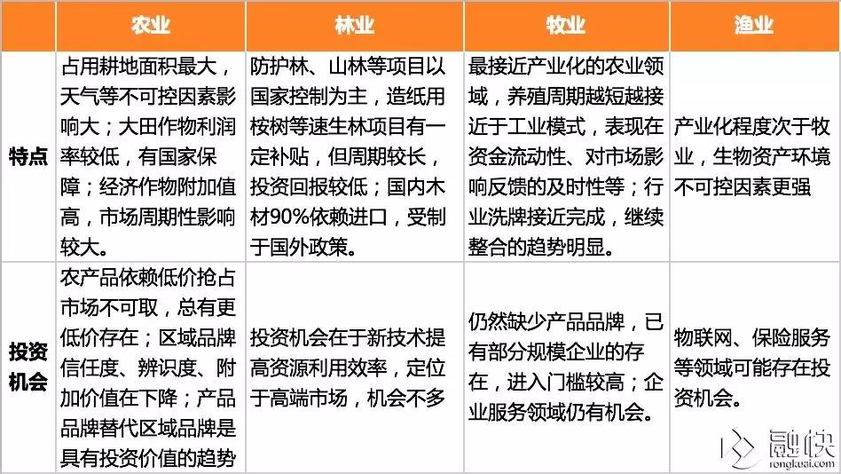 二是内部要将农林牧渔、农资、机械等产业进行对比;