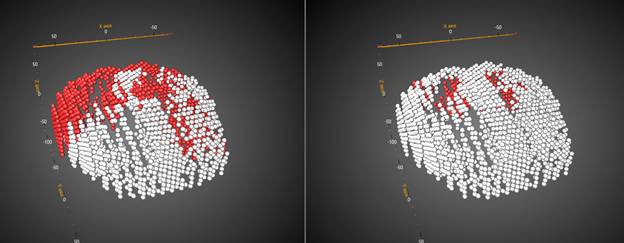 以 38 岁 CEO 的脑神经图为例,它表明了 TouchPoints 的 BLAST 技术作用后,兴奋区大量减少。
